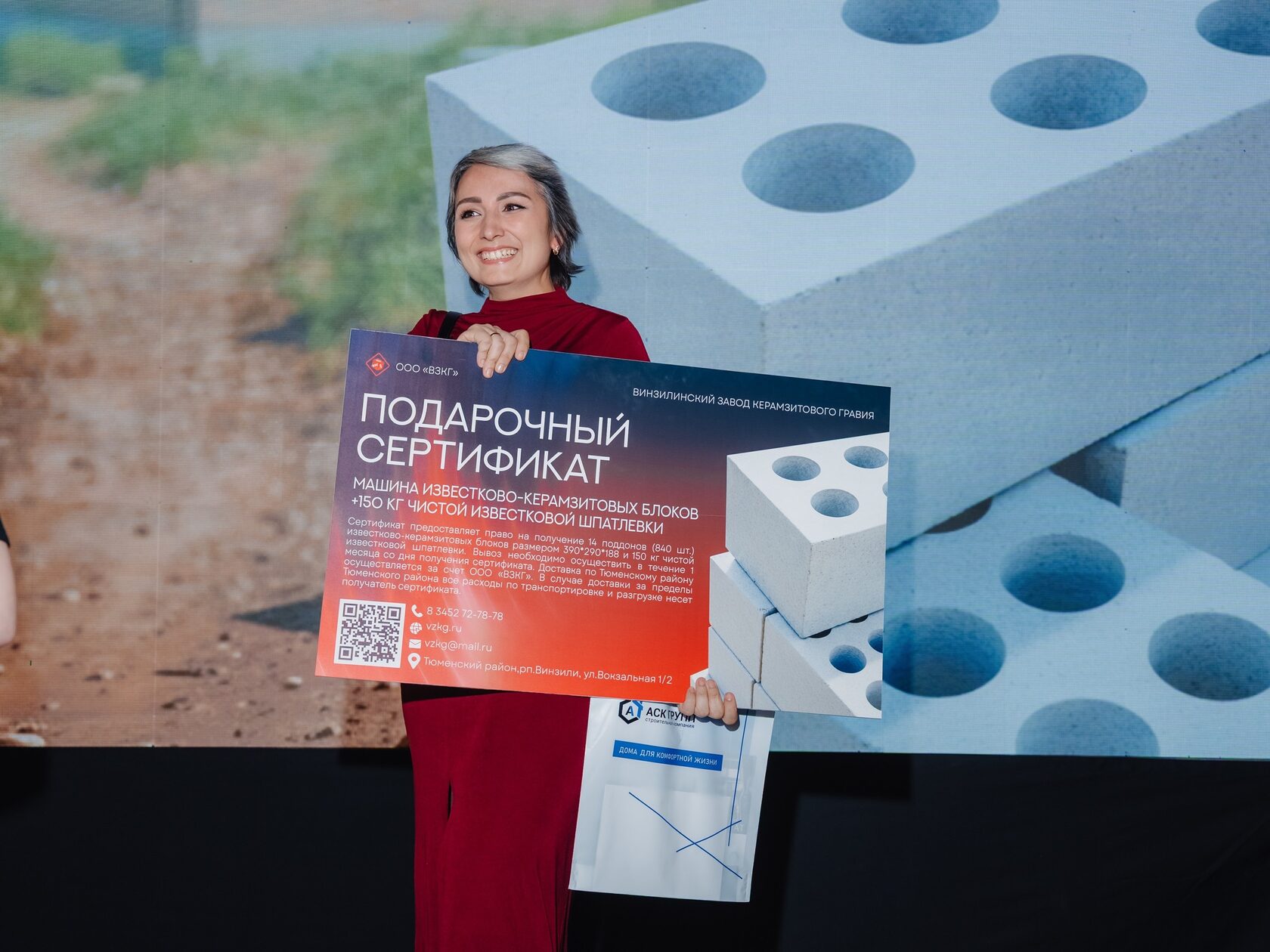 Главным подарком стала машина известково-керамзитовоых блоков и 150 кг шпатлёвки от Винзилинского завода керамзитового гравия (ВЗКГ) стоимостью 130 000 рублей. Компания «СОВА Недвижимость» вручала телевизоры новым владельцам загородных домов, а другие участники дарили полезные подарки и предоставляли скидки на строительство, инженерные системы и отделку.