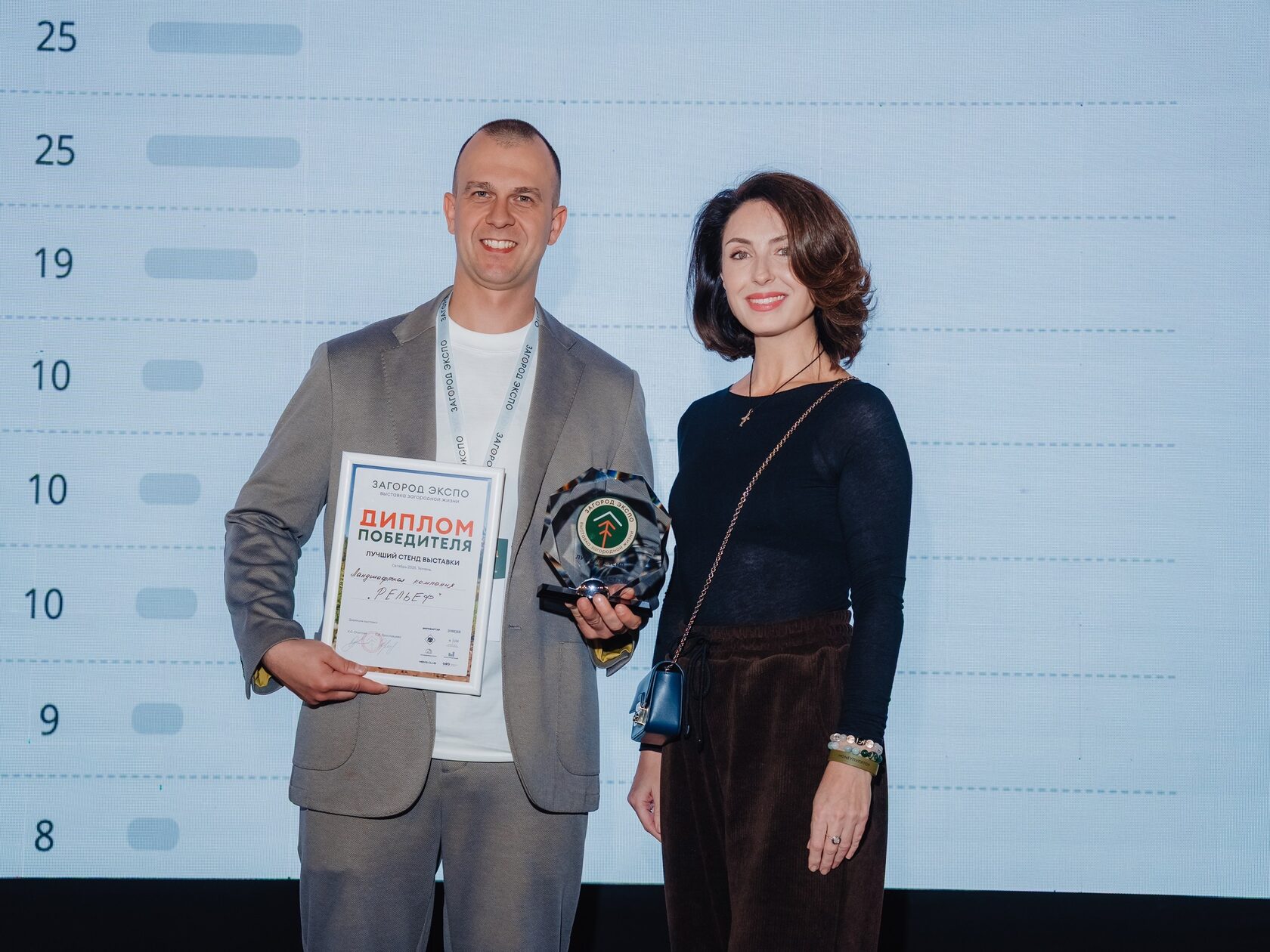 По итогам голосования посетителей и оргкомитета лучшим стендом «Загород Экспо» признан стенд ландшафтной компании «Рельеф» — за выразительный дизайн, профессиональную подачу и внимание к деталям.